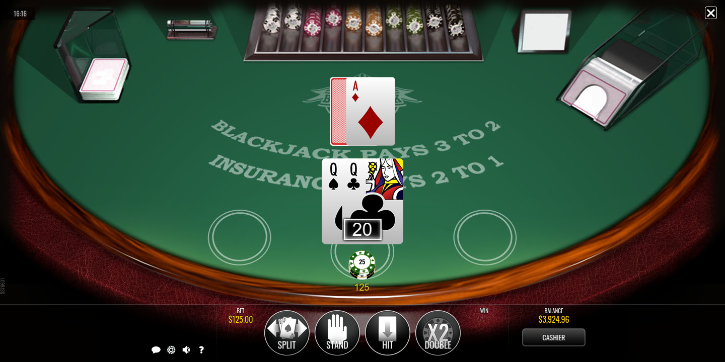 Een teleurstellende aspek van Rival se blackjack-ontwerpe is dat die maatskappy weier om die aantal dekke wat in hul blackjack-speletjies gebruik word bekend te maak. Rival Gaming se standaard weergawe van die tafelspel klassieke is blackjack. Dit word gespeel volgens standaard Las Vegas-reëls, met die handelaar wat op 'n sagte 17 slaan en vir blackjack loer, en die speler word toegelaat om enige twee kaarte te verdubbel en na 'n verdeling te verdubbel.