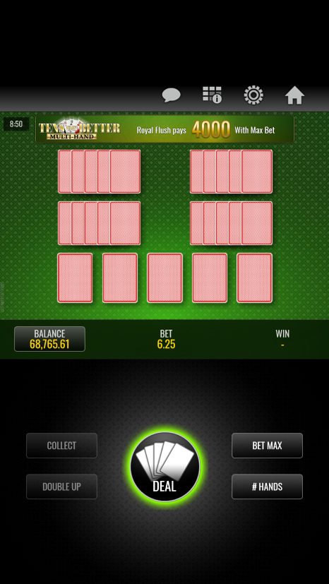 • Om die eerste vyf kaarte uitgedeel te word, moet jy eers op die "Deal"-knoppie klik. Sommige Tens of Better-speletjies het 'n Auto Hold-funksie wat die kaarte hou wat jou kan help om 'n toekenning te wen. Natuurlik kan spelers daardie funksie deaktiveer en die kaarte met die hand "hou".