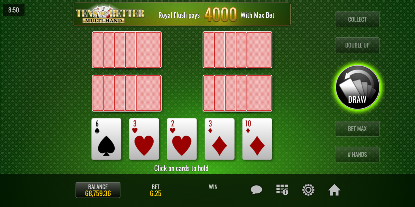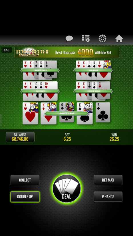 Jouez au poker vidéo à plusieurs mains Tens or Better pour vous amuser