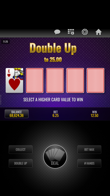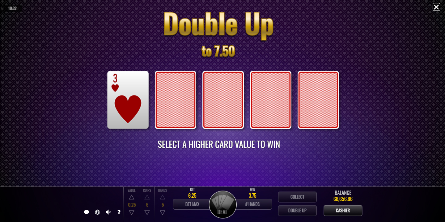 Following this, you will draw your replacement cards and see if you win; if you do, you will not be credited immediately. You now have the option of collecting the money and transferring it to your balance, or you can gamble some more and double your winnings.