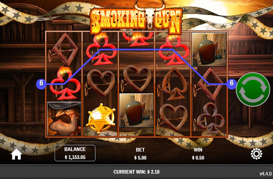Rival created 50 paylines that are spread throughout a five-reel, three-row grid. Smoking Gun is a medium to a high volatility slot machine with a return to player (RTP) of 94.39 percent. The up and down arrows at the bottom of the reels can be used to tailor your bets. Although the coin ratio for each line is fixed at 1-1, you can choose the number of active paylines and the coin value from 0.01 to 0.25.