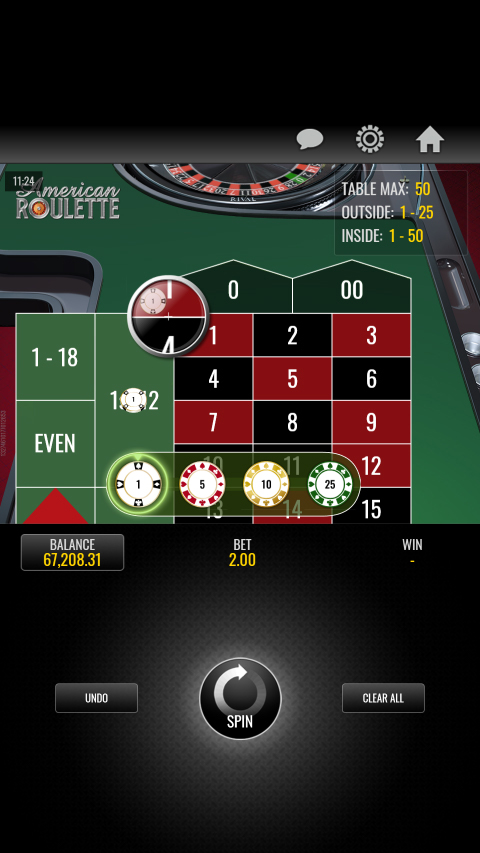 Funktionen "favoritspel" i amerikansk roulette låter dig spara upp till tre insatser av valfri konfiguration och få dem placerade automatiskt. Öppna helt enkelt favoritinsatsmenyn, välj en satsning från din lista så sätts dina marker omedelbart. För att lagra en satsning som en favorit, lägg först satsningen på bordet; gå sedan till favoritinsatsmenyn, ge din insats ett namn och spara den.