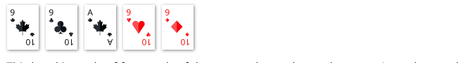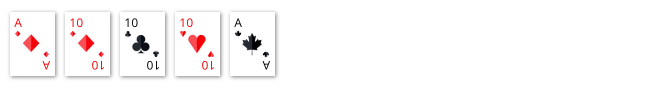 Denna hand består av fyra kort med samma värde och ett slumpmässigt. 10-10-A-10-10 är ett bra exempel på detta. Färgerna på korten är irrelevanta.