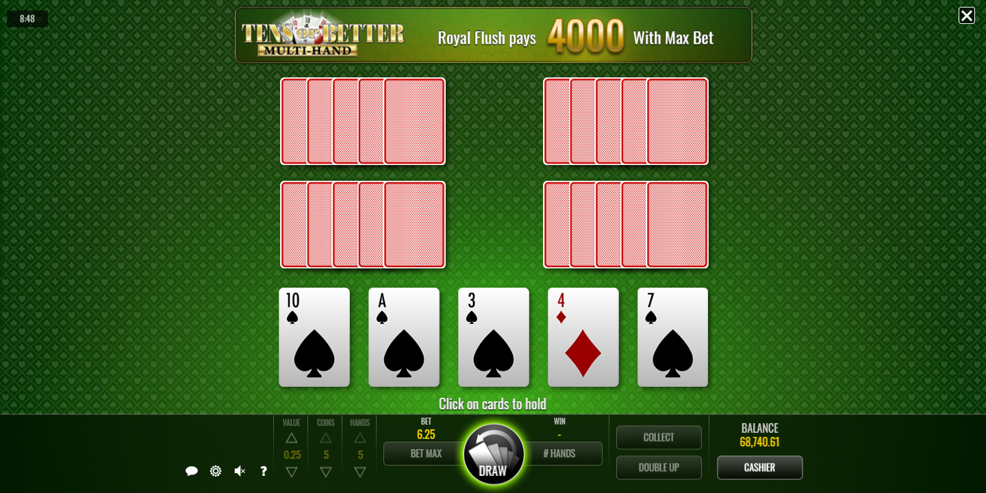 Spela Tens or Better Multi-Hand Video Poker för skojs skull