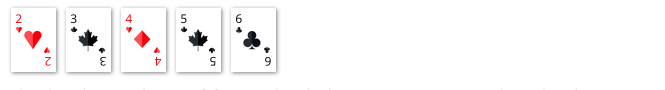 En straight flush bildas när fem identiska kort presenteras i en sekvens. A-2-3-4-5, till exempel, är en straight flush om alla korten är av samma färg.