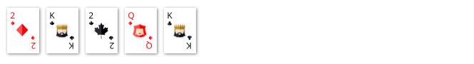 Denna hand består av två par identiska kort och ett slumpmässigt kort. Färgerna på korten är irrelevanta. Två par exempel inkluderar 2-K-2-QK.