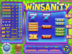 Winsanity är ett enkelt spel med det mycket grundläggande och lätta målet att sätta ihop minst tre av "Bar"-ikonerna och tjäna en vinst. Det är en enkel spelautomat som erbjuder upp till 94.24% Return to Player (RTP) retur till spelare. Så enkelt är det, bara matcha tre av ikonerna efteråt och vinsten är helt och hållet din.