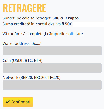 Daca solicitati o retagere de fonduri pentru a cantitate inferioara al cantitatatii minime permise, ce puteti vedea în continuare, banii vor fi tranferati în contul dvs de joc