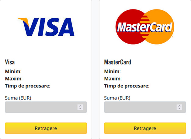 Retragerea minimă pentru următoarele metode de plată este de 50 US$.